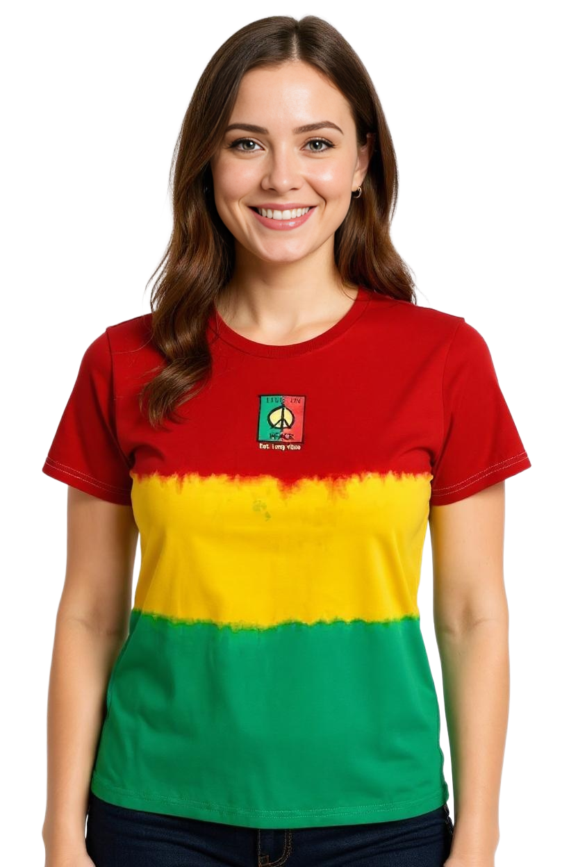 3. Vibrant Colors: The rich red, green, yellow, and black hues not only stand out but also represent the Live in Peace flag, making this shirt a true symbol of cultural appreciation.